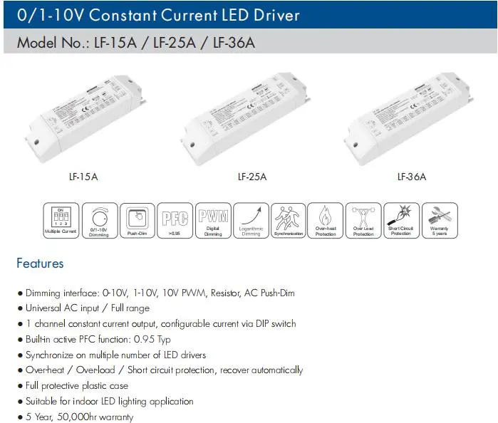 | வகை: | 0/1-10V நிலையான தற்போதைய LED இயக்கி |