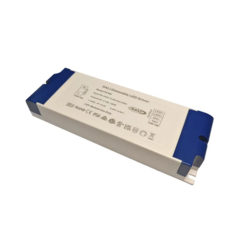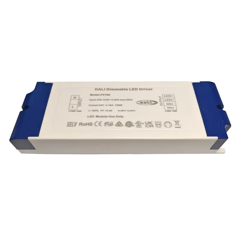 சீனாவில் கான்ஸ்டன்ட் வோல்டேஜ் DALI டிரைவர்களின் தொழில்முறை உற்பத்தியாளராக, Starwell உங்களுக்கு 24V மங்கலான பயன்பாடுகளுக்கான உயர்தர 100W கான்ஸ்டன்ட் வோல்டேஜ் DALI டிரைவரை வழங்க முடியும், இது 90% வரை செயல்திறனுடன் நிலையான 24V/4.16A DC வெளியீட்டை வழங்குகிறது. இது 100% முதல் 0.1% வரை மென்மையான, ஃப்ளிக்கர் இல்லாத மங்கலை ஆதரிக்கிறது மற்றும் விரிவான ஷார்ட் சர்க்யூட், ஓவர்-வோல்டேஜ், ஓவர்லோட் மற்றும் அதிக வெப்பநிலை பாதுகாப்பு செயல்பாடுகளைக் கொண்டுள்ளது.