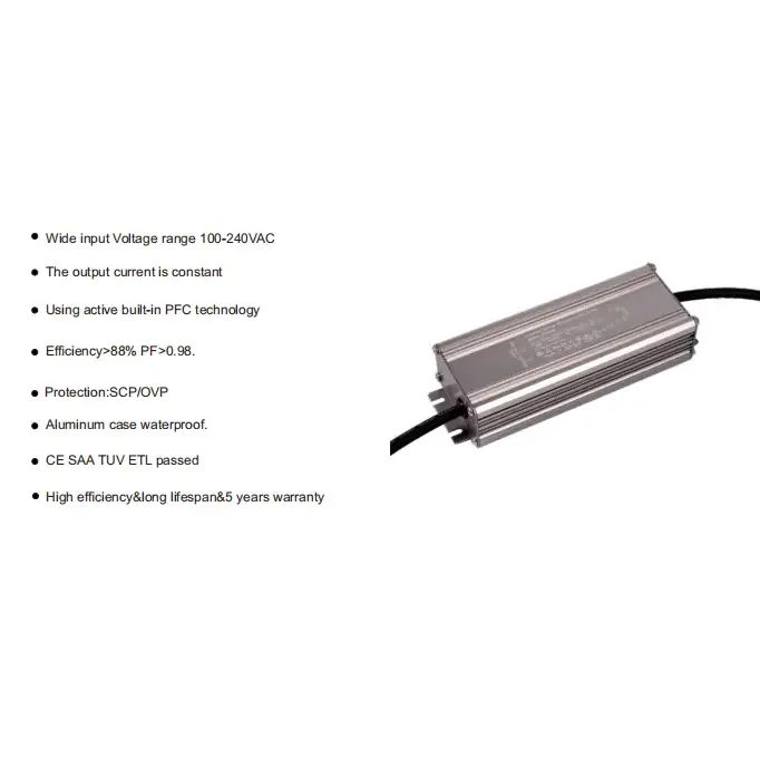STARWELL உயர்தர 1200mA நிலையான தற்போதைய நீர்ப்புகா LED இயக்கி, குறிப்பாக வெளிப்புற/ஈரமான சூழல்களில் LED விளக்கு பொருத்துதல்களுக்காக வடிவமைக்கப்பட்டுள்ளது, 10-40W தெரு விளக்குகள், தோட்ட விளக்குகள், நீருக்கடியில் விளக்குகள், விளம்பர விளக்கு பெட்டிகள் மற்றும் பிற பல காட்சிகளுடன் இணக்கமானது. உயர் துல்லியமான நிலையான மின்னோட்ட சிப்பை ஏற்று, வெளியீட்டு மின்னோட்டப் பிழையானது ≤±3% ஆகும், 1200mA இல் துல்லியமாகவும் நிலையானதாகவும் பராமரிக்கப்படுகிறது, அடிப்படையில் ஃப்ளிக்கர் (ஃப்ளிக்கர் ஆழம் <5%) மற்றும் ஒளி சிதைவு சிக்கல்களை நீக்குகிறது, இது LED சாதனங்களின் சேவை ஆயுளை 30%க்கும் அதிகமாக நீட்டிக்கும்; IP67 நீர்ப்புகா சீல் தொழில்நுட்பம் + நீர்ப்புகா பாட்டிங் தொழில்நுட்பம் பொருத்தப்பட்ட, நீர்ப்புகா நிலை 1 மீட்டர் நீருக்கடியில் 30 நிமிடங்களுக்கு கசிவு அடையும், மழை, தெறிக்கும் நீர் மற்றும் தூசி போன்ற கடுமையான சூழல்களை சமாளிக்கும் திறன் கொண்டது, 50,000 மணி நேரத்திற்கும் மேலாக வெளிப்புற தொடர்ச்சியான வேலை வாழ்க்கை, நீண்ட கால பயன்பாட்டிற்கு இது மிகவும் நம்பகமானது.