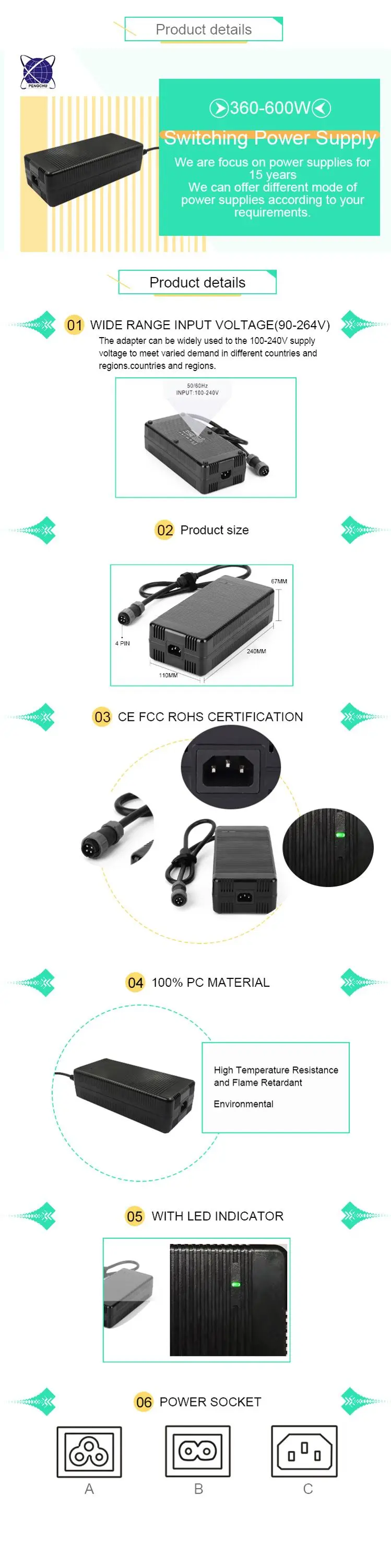 இந்த தயாரிப்பின் முக்கிய நன்மை அதன் சக்திவாய்ந்த வெளியீட்டுத் திறனில் உள்ளது: 12V 50A 600W ஸ்விட்ச்சிங் பவர் சப்ளை அடாப்டர் 600 வாட்ஸ் வரை தொடர்ச்சியான மற்றும் தூய சக்தியை வழங்க முடியும், உங்கள் கணினி முழு சுமையிலும் நிலையானதாக இயங்குவதை உறுதி செய்கிறது. நீங்கள் எங்கிருந்தாலும், அதன் உலகளாவிய மின்னழுத்தம் 600W ஸ்விட்ச்சிங் பவர் சப்ளை வடிவமைப்பு தானாகவே உலகளாவிய 90V-264V அளவிலான பரந்த மின்னழுத்த வரம்பிற்கு ஏற்றவாறு, நிலையற்ற மின்னழுத்தத்தால் ஏற்படும் சிக்கலை முற்றிலும் நீக்குகிறது. பயனர் இணைப்பை எளிதாக்க, 4-பின் டின் கனெக்டருடன் 600W பவர் அடாப்டரை சிறப்பாக வடிவமைத்துள்ளோம், இது நிலையான இடைமுகம் மற்றும் சிறந்த தொடர்பைக் கொண்டுள்ளது, இது நிறுவலின் வசதியையும் பாதுகாப்பையும் பெரிதும் மேம்படுத்துகிறது.