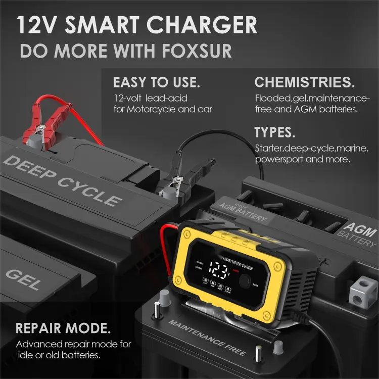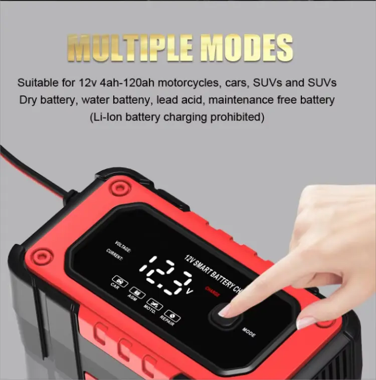 Starwell, ஒரு தொழில்முறை அறிவார்ந்த பேட்டரி சார்ஜர் உற்பத்தியாளர் மற்றும் சீனாவைச் சேர்ந்த சப்ளையர், 12V 6A முழு நுண்ணறிவு தானியங்கி பழுதுபார்க்கும் பேட்டரி சார்ஜரை வழங்குகிறது, இது பல்வேறு லீட்-அமில பேட்டரிகளின் சார்ஜிங் தேவைகளைப் பூர்த்தி செய்ய வடிவமைக்கப்பட்ட அதிநவீன சாதனமாகும். நீங்கள் கார் பேட்டரிகள், மோட்டார் சைக்கிள்கள், ஏடிவிகள், புல்வெளி டிராக்டர்கள் அல்லது படகுகளை சார்ஜ் செய்ய வேண்டியிருந்தாலும், உங்கள் வாகனங்கள் சீராக இயங்குவதற்கு இந்த சார்ஜர் ஒரு இன்றியமையாத கருவியாகும். அதன் மேம்பட்ட தொழில்நுட்பம் மற்றும் மல்டிஃபங்க்ஸ்னல் திறன்களுடன், இந்த சார்ஜர் வழக்கமான சார்ஜிங் தீர்வை விட அதிகமாக வழங்குகிறது.