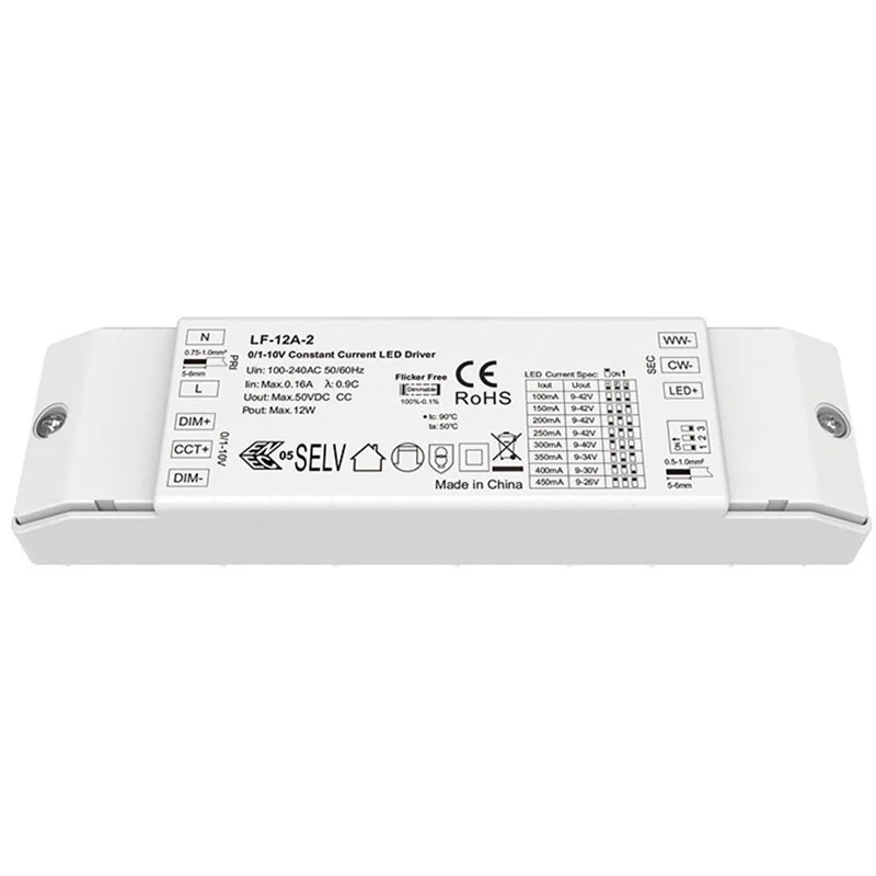 1. துல்லியமான 0-10V CCT டிம்மிங்: 12W நிலையான மின்னோட்டம் 0-10V CCT மங்கக்கூடிய LED இயக்கி சுமூகமான பிரகாசம் மற்றும் நேரியல் மங்கலான பதிலுடன் வண்ண வெப்பநிலை சரிசெய்தலை ஆதரிக்கிறது.
