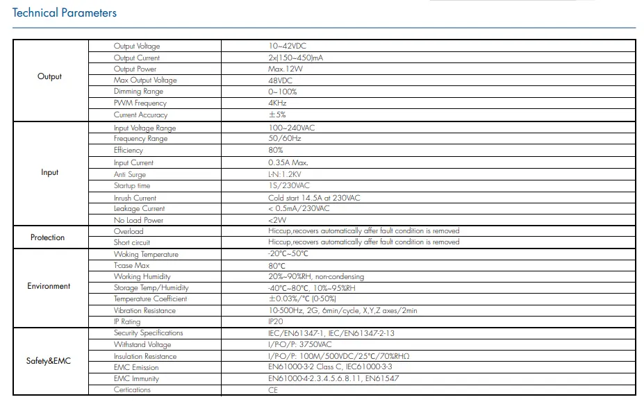100~240VAC இன் உலகளாவிய உள்ளீட்டுடன், CCT டிம்மபிள் எல்இடி டிரைவர் உலகளாவிய பவர் கிரிட்களுக்குப் பொருந்துகிறது. 85% வரை அதிக செயல்திறன் மற்றும் ஆற்றல் காரணி ≥0.90 குறைந்த ஆற்றல் நுகர்வு மற்றும் வெப்ப உருவாக்கம், இயக்கி மற்றும் LED ஆயுட்காலம் நீட்டிக்கப்படுகிறது.