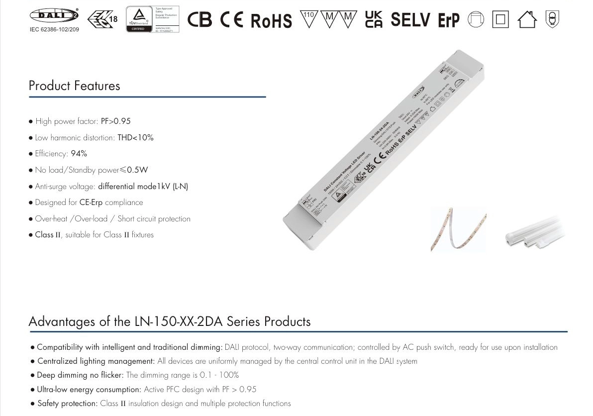 150W 24V DALI CCT நிலையான மின்னழுத்த LED இயக்கி |