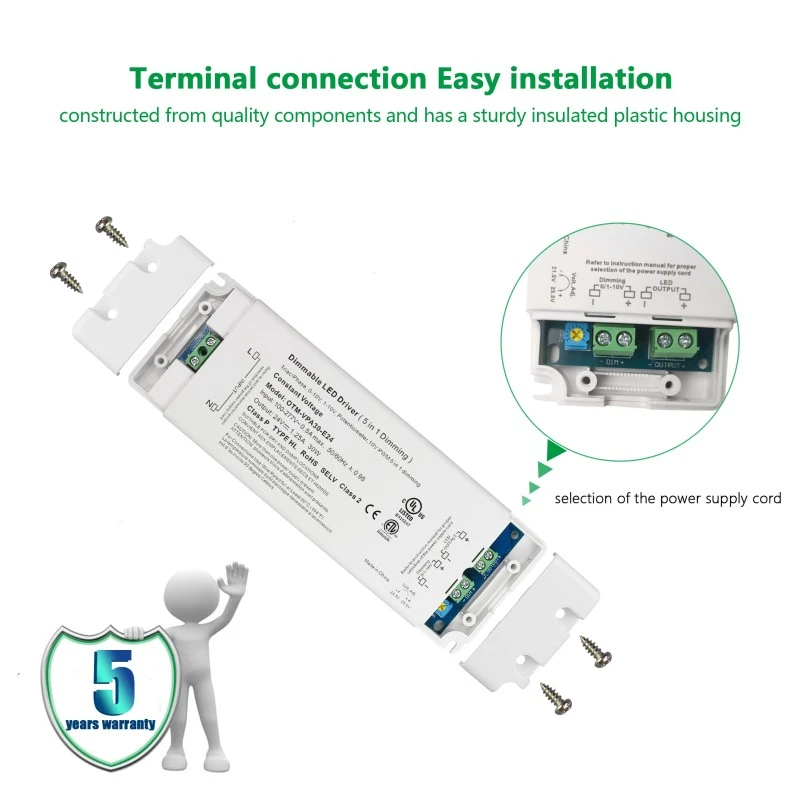 4. விரிவான பாதுகாப்பு: STARWELL 0-10V LED இயக்கி அதிக மின்னழுத்தம், அதிக மின்னோட்டம், ஷார்ட் சர்க்யூட் மற்றும் அதிக வெப்பநிலை பாதுகாப்பு செயல்பாடுகளுடன் ஒருங்கிணைக்கப்பட்டுள்ளது, மேலும் -20℃ முதல் +60℃ வரையிலான வேலை வெப்பநிலை வரம்பைக் கொண்டுள்ளது, இது MTBF 50,00 மணிநேரம் நீண்ட சேவை வாழ்க்கையை உறுதி செய்கிறது.