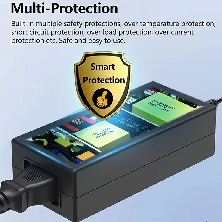 ஸ்டார்வெல் நீடித்த 24V 7.5A யுனிவர்சல் டெஸ்க்டாப் பவர் அடாப்டர் உயர் மாற்றும் திறன், குறைந்த சிற்றலை மற்றும் சத்தம் மற்றும் பல்வேறு சுமைகளின் கீழ் சிறந்த மின்னழுத்த ஒழுங்குமுறை ஆகியவற்றைக் கொண்டுள்ளது. வீட்டுவசதி திறமையான வெப்பச் சிதறல் மற்றும் ஆயுள் ஆகியவற்றை உறுதி செய்கிறது. விரிவான பாதுகாப்பு சுற்றுகள் அதிக மின்னழுத்தம், அதிக மின்னோட்டம், ஷார்ட் சர்க்யூட் மற்றும் அதிக வெப்பம் ஆகியவற்றிலிருந்து பாதுகாக்கின்றன, உபகரணங்கள் மற்றும் பயனர்களின் பாதுகாப்பை அதிகரிக்கும்.