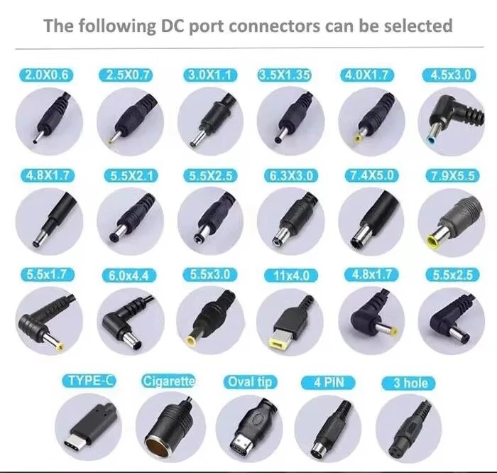 3. கனெக்டர் இணக்கத்தன்மை: அடாப்டரின் DC அவுட்புட் பிளக், உங்கள் சாதனத்தின் பவர் ஜாக்கைப் பாதுகாப்பாகப் பொருத்துவதற்கு, சரியான துருவமுனைப்பு (பெரும்பாலும் சென்டர்-பாசிட்டிவ்) மற்றும் உடல் அளவு (எ.கா. 5.5 மிமீ x 2.1 மிமீ) உள்ளதா என்பதை உறுதிப்படுத்தவும்.