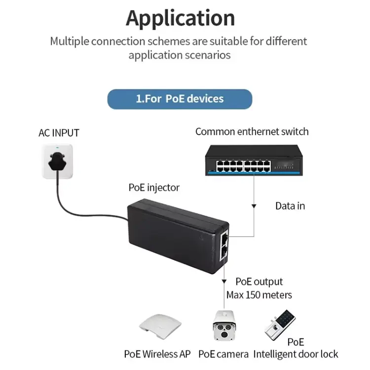 இந்த 24V 1A கிகாபிட் செயலற்ற POE இன்ஜெக்டர் இதில் பரவலாகப் பயன்படுத்தப்படுகிறது: