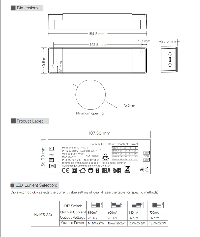 அல்ட்ரா சிறிய அளவு வடிவமைப்பு, பயன்படுத்தப்படும் மூலப்பொருட்கள் முதல் வரிசை பிராண்டுகள், இறக்குமதி செய்யப்பட்ட சிப் அல்ட்ரா டீப் டிம்மிங் டிசைன், பல்வேறு ஐரோப்பிய பிராண்டுகளின் டிம்மர்களுக்கு பொருந்தும் எதிர்ப்பு அலை மின்னழுத்தம் 2KV, ஸ்மூத் டிம்மிங், ஃப்ளிக்கர் ஃப்ரீ, அட்ஜெஸ்ட் செய்யக்கூடிய கரண்ட் டிசைன், டிம்மிங் செயல்பாட்டில் குறைந்த சத்தம்