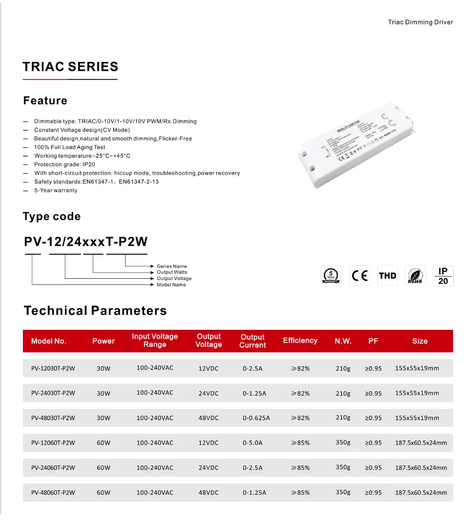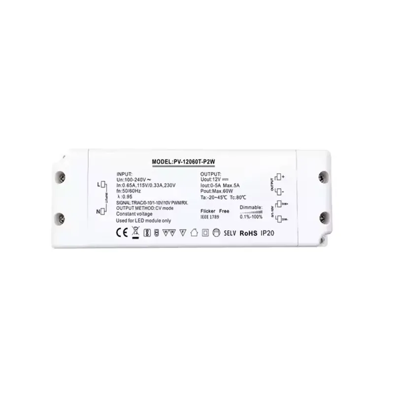 ஒரு நிலையான கான்ஸ்டன்ட் வோல்டேஜ் பவர் சப்ளை ட்ரையாக் டிம்மிங் லெட் டிரைவராக, இது நிலையான 12வி டிசி மின்னழுத்த வெளியீட்டை வழங்குகிறது. இந்த 12V 30W ட்ரையாக் மங்கலான மின்சாரம் உயர்தர கூறுகள் மற்றும் மேம்பட்ட சுற்று வடிவமைப்பை ஏற்றுக்கொள்கிறது, முழு மங்கலான வரம்பில் நிலையான வெளியீட்டு மின்னழுத்தத்தை உறுதிசெய்கிறது மற்றும் அடிப்படையில் விளக்குகளின் ஒளிரும் தன்மையை நீக்குகிறது. இது உட்புற பயன்பாட்டிற்கான உண்மையான ஃப்ளிக்கர் இல்லாத டிரைக் டிம்மிங் லெட் இயக்கி ஆகும். அதன் மினுமினுக்காத அம்சம் ஒரு வசதியான மற்றும் ஆரோக்கியமான காட்சி சூழலை உருவாக்குவது மட்டுமல்லாமல், உணர்திறன் வாய்ந்த LED ஒளி மூலங்கள் மற்றும் தொகுதிக்கூறுகளை திறம்பட பாதுகாக்கிறது, இது லைட்டிங் சாதனங்களின் ஒட்டுமொத்த ஆயுட்காலத்தை நீட்டிக்கிறது.