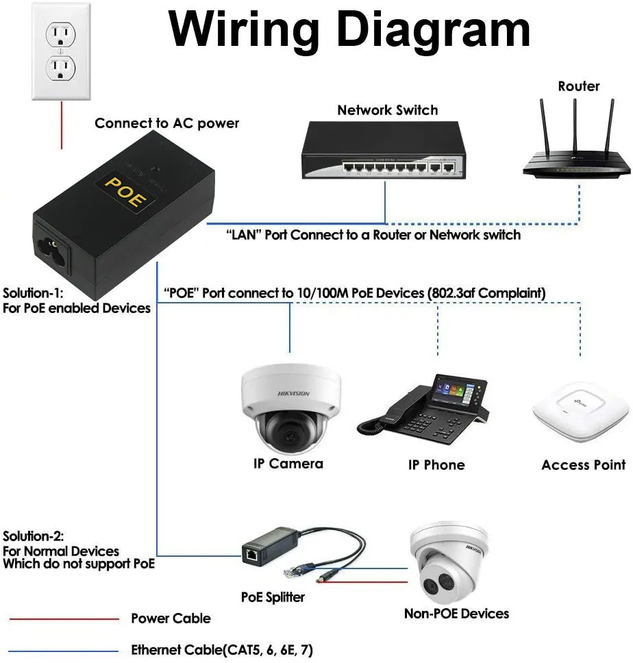 நிலையானது: உங்கள் சாதனத்திற்கு IEEE 802.3af/பேச்சுவார்த்தையில் கண்டிப்பாகத் தேவைப்பட்டால், இந்த இன்ஜெக்டர் செயலில் உள்ள ஹேண்ட்ஷேக் நெறிமுறைகளை ஆதரிக்கிறது என்பதை உறுதிப்படுத்தவும்; இல்லையெனில், செயலற்ற PoE இன்ஜெக்டர் இணக்கமற்ற உபகரணங்களை சேதப்படுத்தலாம்.