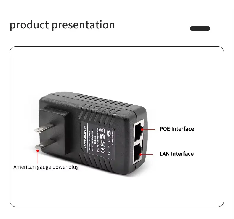 • CAT 5 ஈதர்நெட் கேபிள் மூலம் 100M வரை சாதனங்களுக்கு ரிமோட் பவரை வழங்குகிறது