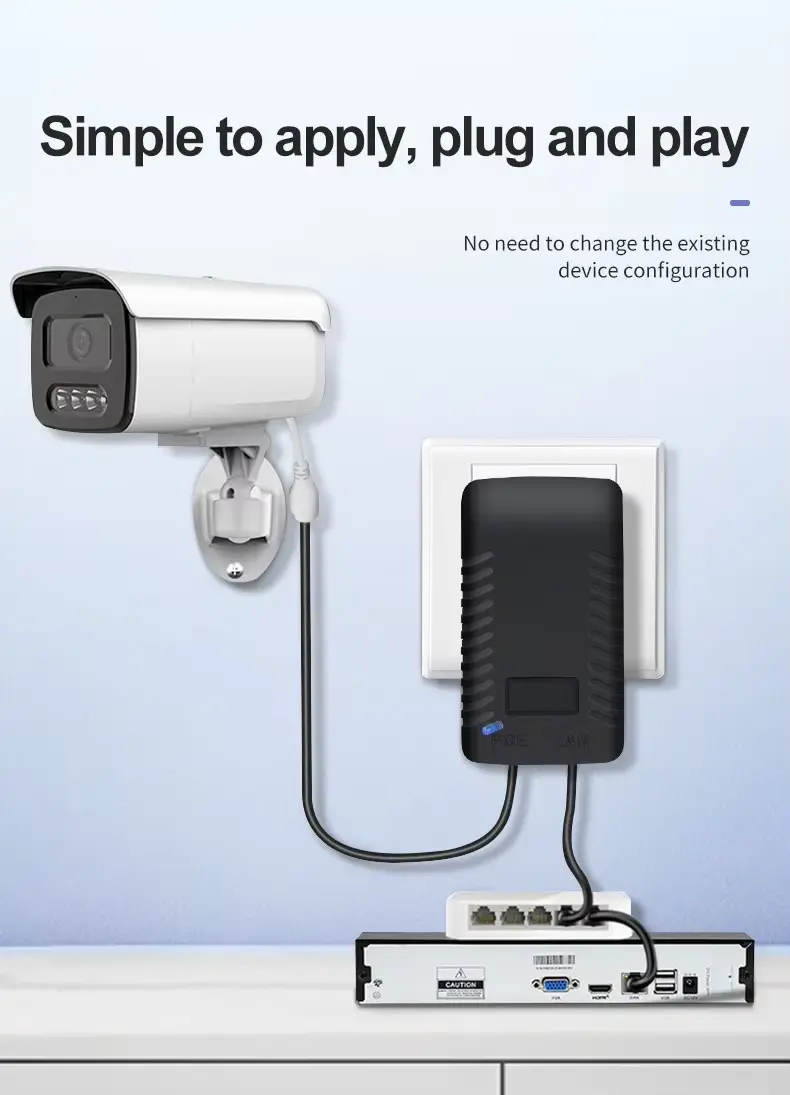 நீண்ட தூர IP கேமராக்கள்: 48V PTZ (Pan-Tilt-Zoom) அல்லது தொலைதூர இடங்களில் நிறுவப்பட்டுள்ள புல்லட் கேமராக்களை இயக்குவதற்கு ஏற்றது.