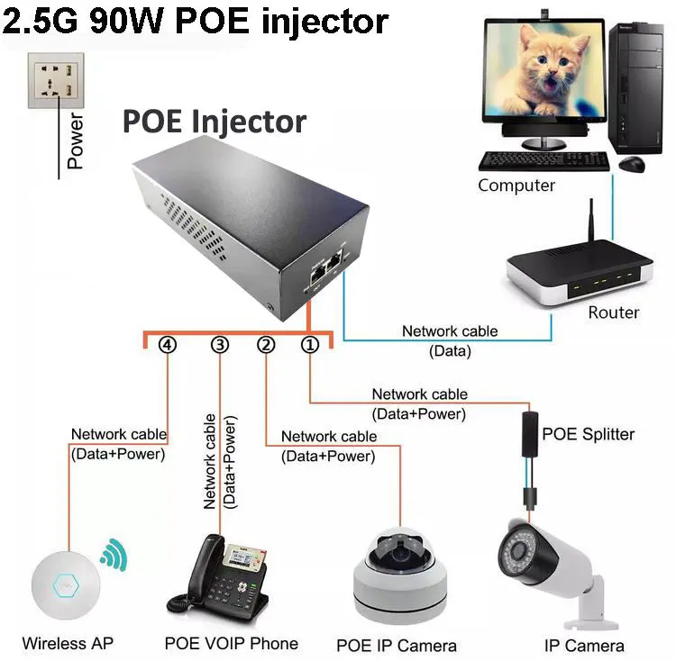 · பரந்த இணக்கத்தன்மை: பல்வேறு PoE தரநிலைகள் மற்றும் நெட்வொர்க் சாதனங்களுடன் வேலை செய்கிறது.