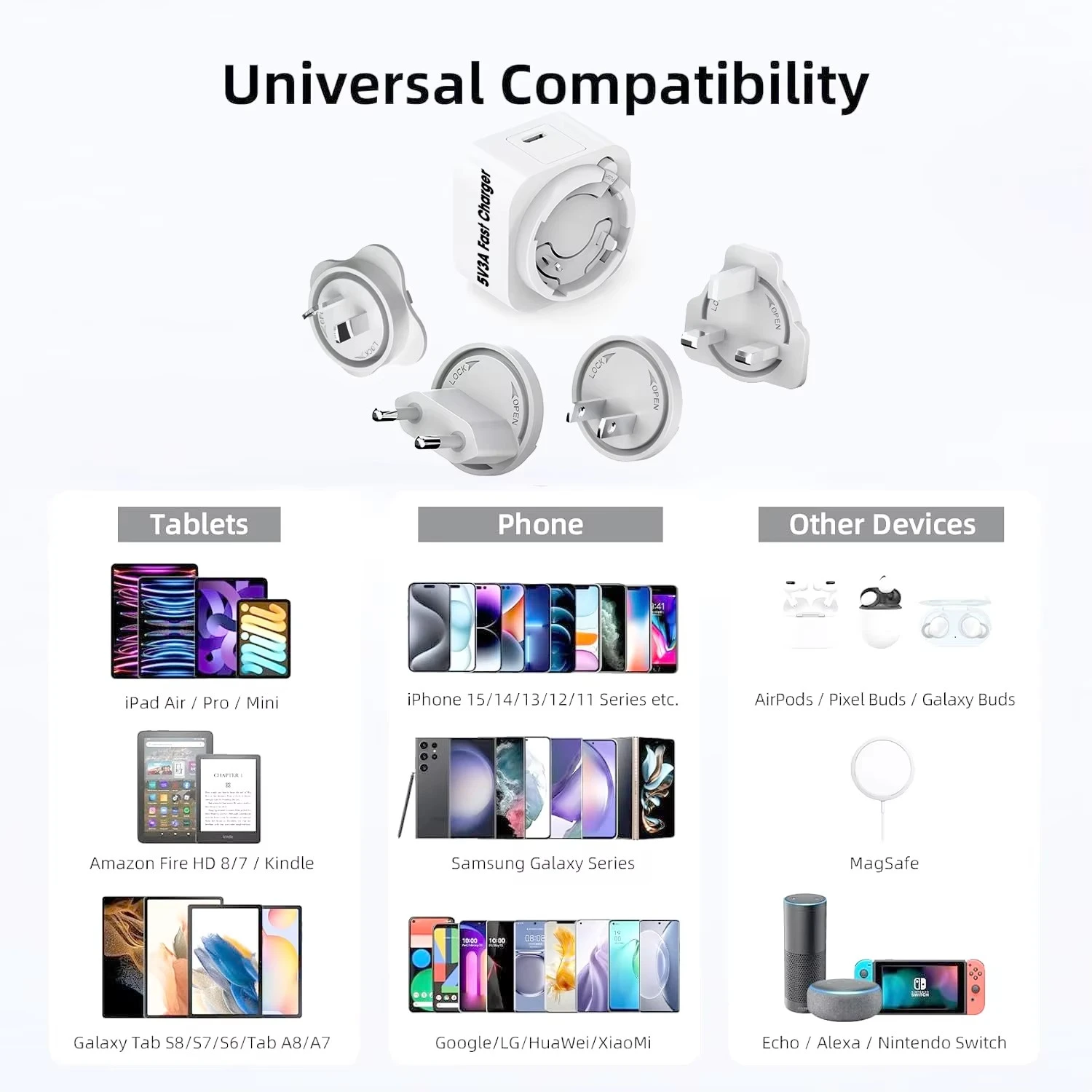ஸ்மார்ட்போன்கள், டேப்லெட்டுகள், போர்ட்டபிள் ஸ்பீக்கர்கள் மற்றும் பிற எலக்ட்ரானிக்ஸ்களை இயக்குவதற்கு ஏற்றது, இந்த அடாப்டர் வேகம், பாதுகாப்பு மற்றும் உலகளாவிய பல்துறை ஆகியவற்றை ஒரு சிறிய தீர்வுடன் இணைக்கிறது.