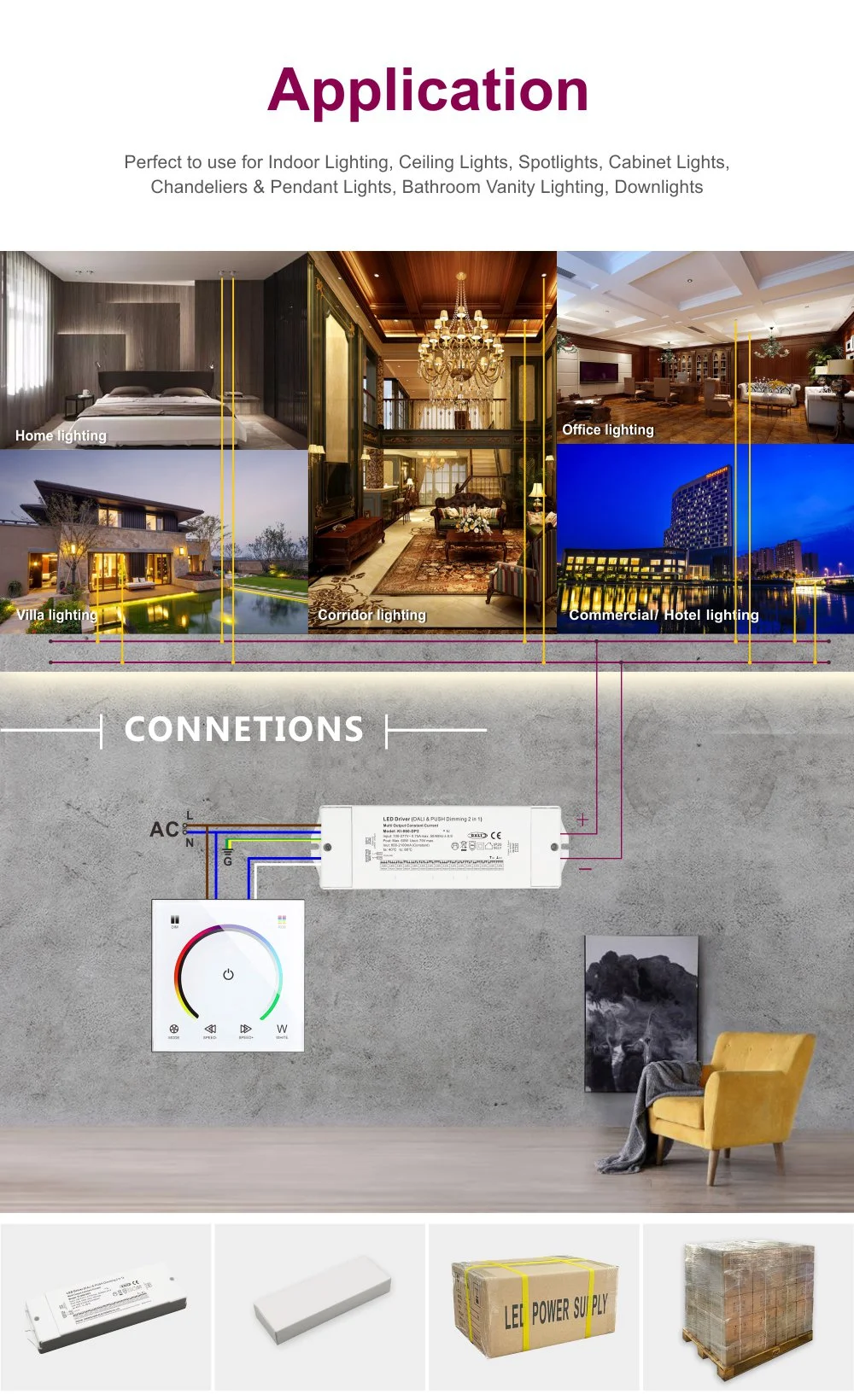 அலுவலகங்களில் எல்இடி பேனல் விளக்குகள், ஷாப்பிங் மால்களில் எல்இடி டவுன்லைட்கள், ஹோட்டல் தாழ்வாரங்களில் மறைக்கப்பட்ட ஒளி பட்டைகள் அல்லது வீட்டு இடங்களில் உச்சரிப்பு விளக்குகள் என எதுவாக இருந்தாலும், இந்த இயக்கி சிறந்த தேர்வாகும். முழு பாட்டிங்குடன் கூடிய சிறிய அலுமினியம் அலாய் ஹவுசிங் சிறந்த வெப்ப மேலாண்மை மற்றும் நீண்ட கால நிலையான செயல்பாட்டை உறுதி செய்கிறது. ஓவர்வோல்டேஜ், ஓவர் கரண்ட், ஷார்ட் சர்க்யூட் மற்றும் ஓவர் ஹீட் ஆகியவற்றிற்கான உள்ளமைக்கப்பட்ட பல பாதுகாப்பு சுற்றுகள் முழு விளக்கு அமைப்புக்கும் விரிவான பாதுகாப்புப் பாதுகாப்பை வழங்குகிறது.