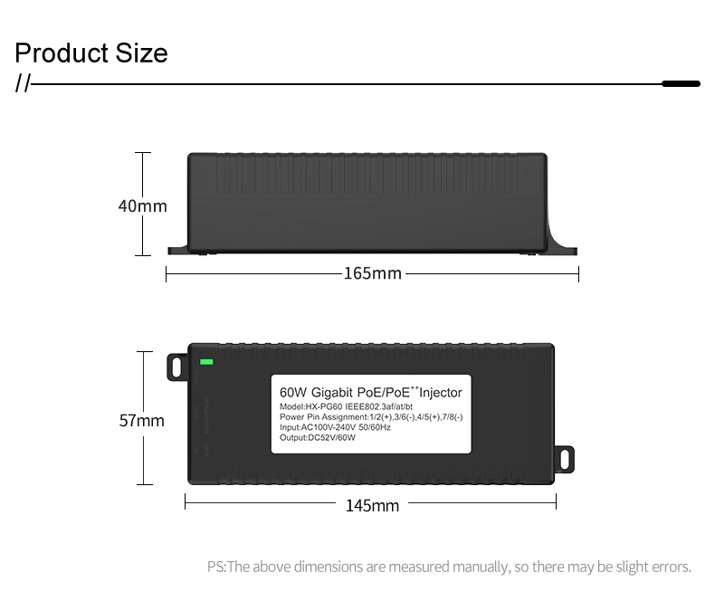கிகாபிட் 60W நிலையான POE இன்ஜெக்டர் |