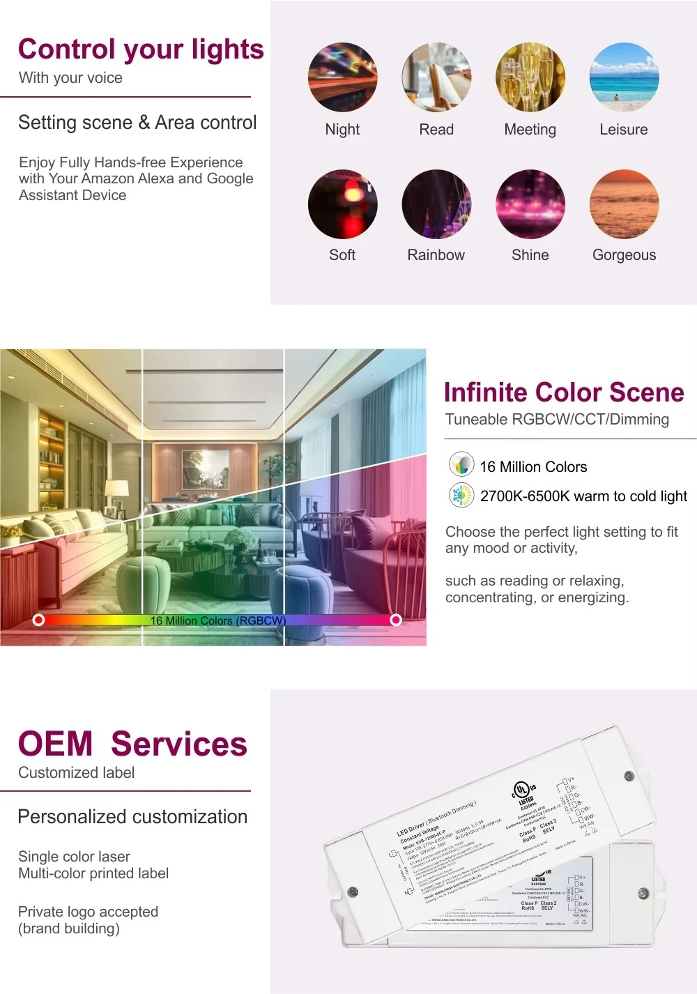 2. Zigbee dimmable driver could be controlled by Smart Speaker, like Google home or Amazon echo