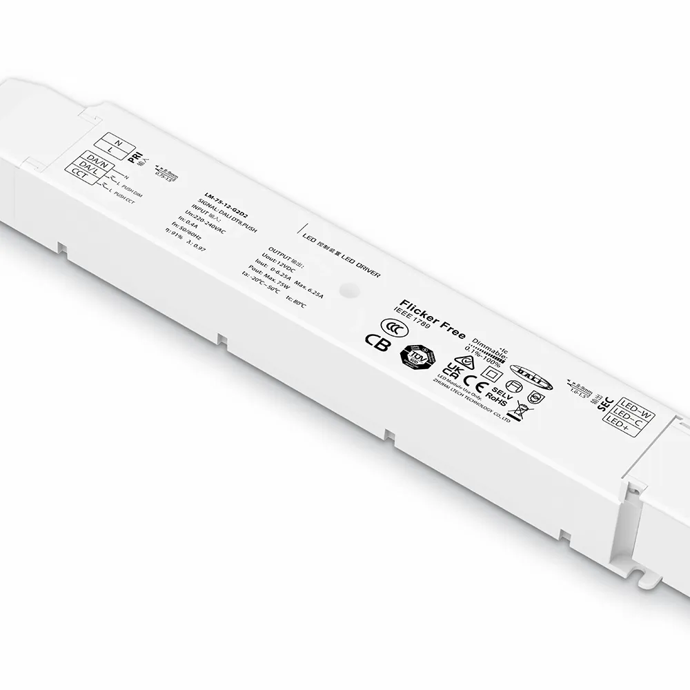 STARWELL உயர்தர 75W 12V நிலையான மின்னழுத்தம் DALI மங்கலான LED இயக்கி என்பது தொழில்முறை LED விளக்கு அமைப்புகளுக்காக வடிவமைக்கப்பட்ட உயர் செயல்திறன் கொண்ட மின்சாரம் ஆகும். இது நிலையான 12V DC வெளியீட்டை 75W அதிகபட்ச ஆற்றலுடன் வழங்குகிறது, இது ஸ்ட்ரிப் விளக்குகள், அடையாளங்கள் மற்றும் அலங்கார விளக்குகள் உட்பட குறைந்த மின்னழுத்த LED பயன்பாடுகளின் பரந்த அளவிலான நம்பகமான செயல்பாட்டை உறுதி செய்கிறது. உள்ளமைக்கப்பட்ட DALI மங்கலான இணக்கத்தன்மையுடன், LED இயக்கி துல்லியமான டிஜிட்டல் கட்டுப்பாடு மற்றும் ஸ்மார்ட் லைட்டிங் நெட்வொர்க்குகளில் தடையற்ற ஒருங்கிணைப்பை செயல்படுத்துகிறது.