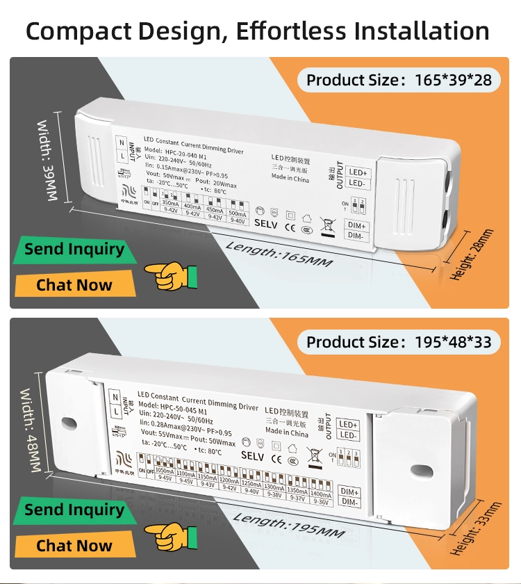 பரந்த மின்னழுத்தம் மற்றும் அதிக சக்தி பொருந்தக்கூடிய தன்மை: ஸ்டாவெல் நிலையான மின்னோட்டம் 0-10V மங்கலான LED இயக்கியின் அதிகபட்ச வெளியீடு மின்னழுத்தம் 50 வோல்ட் மற்றும் அதிகபட்ச வெளியீட்டு சக்தி 20 வாட்ஸ் ஆகும். இது 3 முதல் 15 தொடர் இணைக்கப்பட்ட LED ரிப்பன்களுடன் இணக்கமாக இருக்கும், மேலும் ஸ்பாட்லைட்கள், டவுன்லைட்கள் மற்றும் பேனல் விளக்குகள் போன்ற 20 வாட்ஸ் அல்லது அதற்கும் குறைவான சக்தி கொண்ட பல்வேறு LED லைட்டிங் தயாரிப்புகளுக்கு ஏற்றது. கூடுதல் இயக்கி பொருத்தம் தேவையில்லை, இதனால் தேர்வு மற்றும் பயன்பாட்டு செலவுகள் குறையும்.