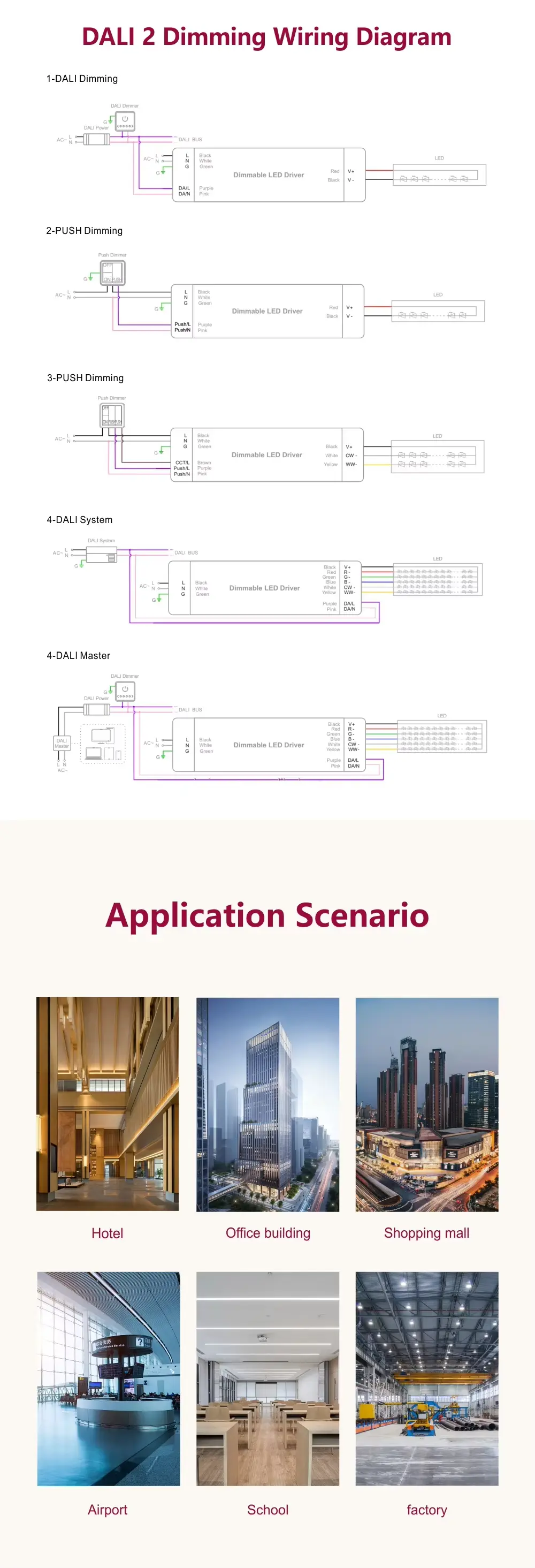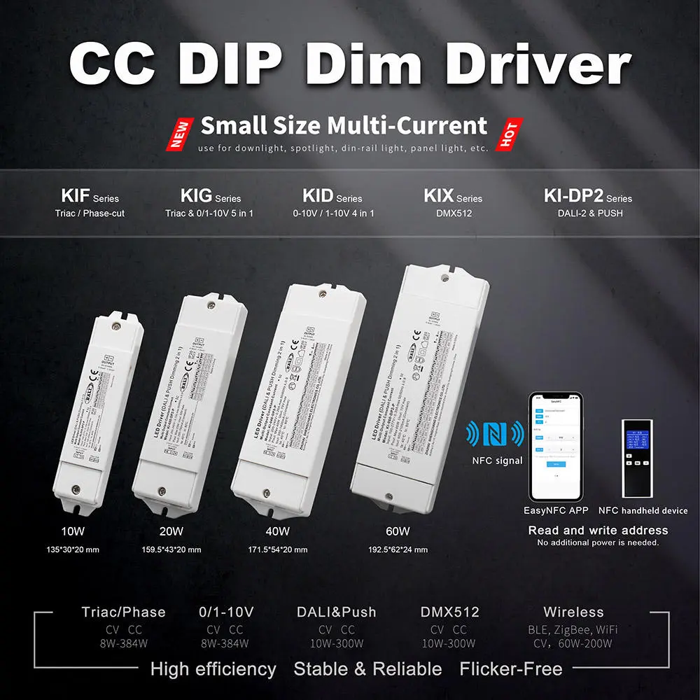நம்பகத்தன்மை மற்றும் செயல்திறனுக்காக வடிவமைக்கப்பட்டது, இது நிலையான LED செயல்பாட்டிற்கு நிலையான மின்னோட்ட வெளியீட்டிற்கு உத்தரவாதம் அளிக்கிறது. அதன் 2-இன்-1 வடிவமைப்பு சரக்குகளை ஒழுங்குபடுத்துகிறது மற்றும் தானியங்கு ஸ்மார்ட் கட்டிடங்கள் முதல் எளிமையான ரெட்ரோஃபிட் பயன்பாடுகள் வரை பல்வேறு திட்டத் தேவைகளுக்கு மாற்றியமைக்கிறது.