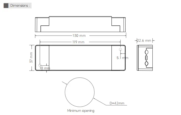 130×37×22.6மிமீ(L×W×H) |