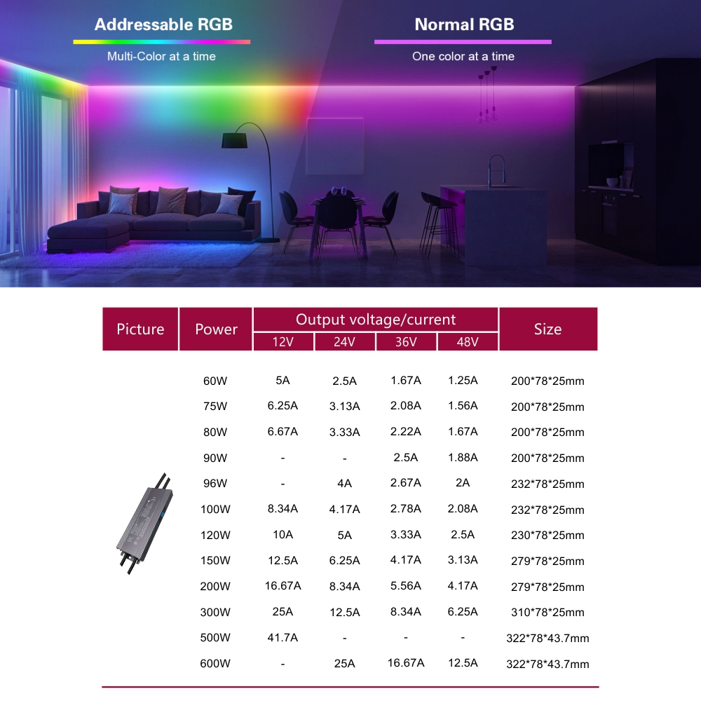 அதன் முக்கிய வடிவமைப்பு மிகவும் தேவைப்படும் நிறுவல் மற்றும் பயன்பாட்டுத் தேவைகளைப் பூர்த்தி செய்வதை நோக்கமாகக் கொண்டுள்ளது. மின்சாரம் நிலையான மின்னழுத்த வெளியீட்டு பயன்முறையை ஏற்றுக்கொள்கிறது, இது 12V அல்லது 24V இன் நிலையான DC மின்னழுத்தத்தை வழங்குகிறது, மேலும் பல்வேறு LED ஸ்ட்ரிப் விளக்குகள் மற்றும் தொகுதிகளை இயக்குவதற்கு உகந்ததாக உள்ளது. சுவாரஸ்யமாக, ஒரு சக்திவாய்ந்த 200W டிரைவ் ஃபோர்ஸை வழங்கும் போது, இது ஒரு அல்ட்ரா-காம்பாக்ட் அளவை அடைகிறது, சந்தி பெட்டிகள் அல்லது குறுகிய கூரைகளில் நிறுவல் இடத்தை பெரிதும் சேமிக்கிறது. தயாரிப்புத் தொடர் நெகிழ்வானது, 1 முதல் 5 சேனல்கள் வரை வெவ்வேறு சேனல் பதிப்புகளை வழங்குகிறது: ஒற்றை-சேனல் பதிப்பு தூய மங்கலுக்கானது, இரட்டை-சேனல் பதிப்பு முழு அளவிலான CCT சரிசெய்தலை அடைய குளிர் மற்றும் சூடான வெள்ளை ஒளியைக் கட்டுப்படுத்துகிறது, மேலும் ஐந்து-சேனல் பதிப்பு சக்திவாய்ந்த DALI நிலையான கூல் வோல்டேஜ் RGB CCT மங்கலான 200W வார்ம் கன்ட்ரோல் வோல்டேஜ் RGB CCT டிம்மபிள் 200W LED ஒளி, பில்லியன் கணக்கான வண்ணங்கள் மற்றும் வளிமண்டலங்களை உருவாக்குகிறது.