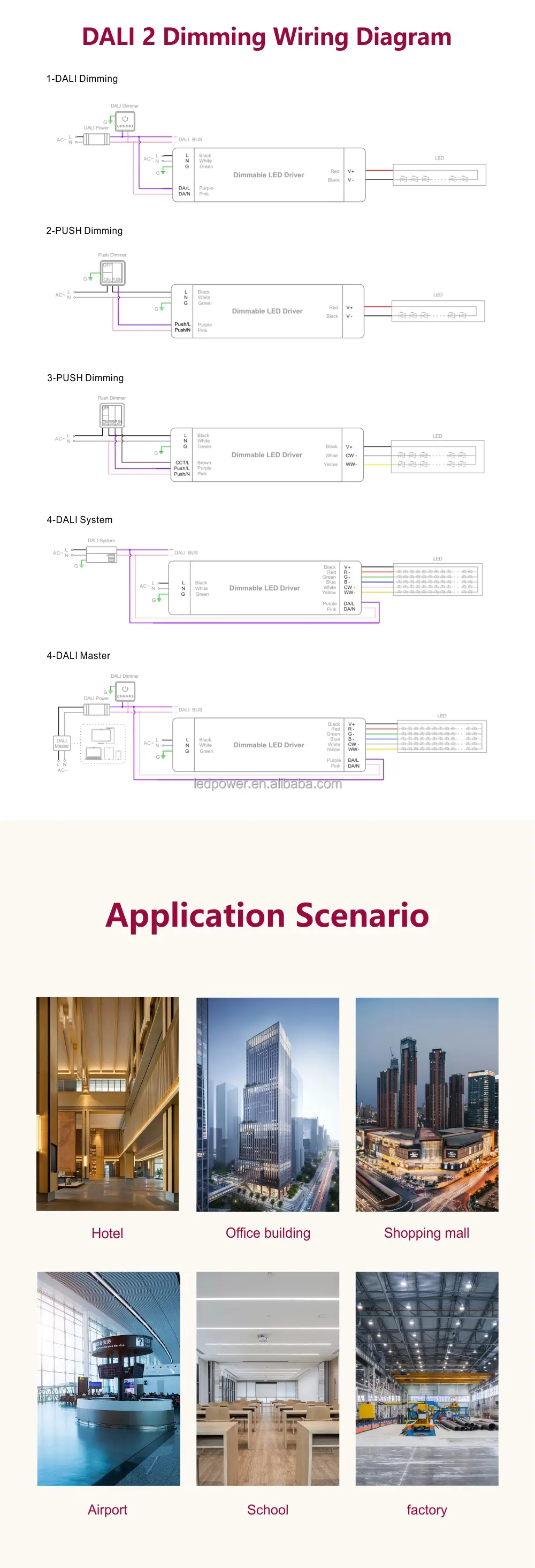 எளிமையான ஒற்றை-வண்ண வெப்பநிலை மங்கலாக இருந்தாலும் அல்லது சிக்கலான 5 சேனல்கள் Rgb Cct காட்சி நிரலாக்கமாக இருந்தாலும், இந்த இயக்கி மின்சாரம் நிலையான DALI வழிமுறைகளுக்கு நிலையான முறையில் பதிலளிக்கும். இதன் பொருள், குழுக் கட்டுப்பாடு, நேர நிரலாக்கம் மற்றும் சென்சார் இணைப்பு ஆகியவற்றை அடைய எந்த DALI ஸ்மார்ட் லைட்டிங் அமைப்பிலும் எளிதாக ஒருங்கிணைக்க முடியும். நம்பகமான 12-24 வோல்ட் நிலையான மின்னழுத்தம் DALI மங்கலான LED இயக்கி, அதன் சிறந்த மின் செயல்திறன் LED லைட் கீற்றுகள் நீண்ட காலத்திற்கு நிலையான மற்றும் திறமையாக வேலை செய்வதை உறுதி செய்கிறது.