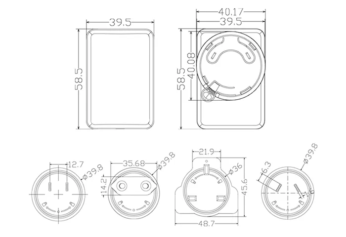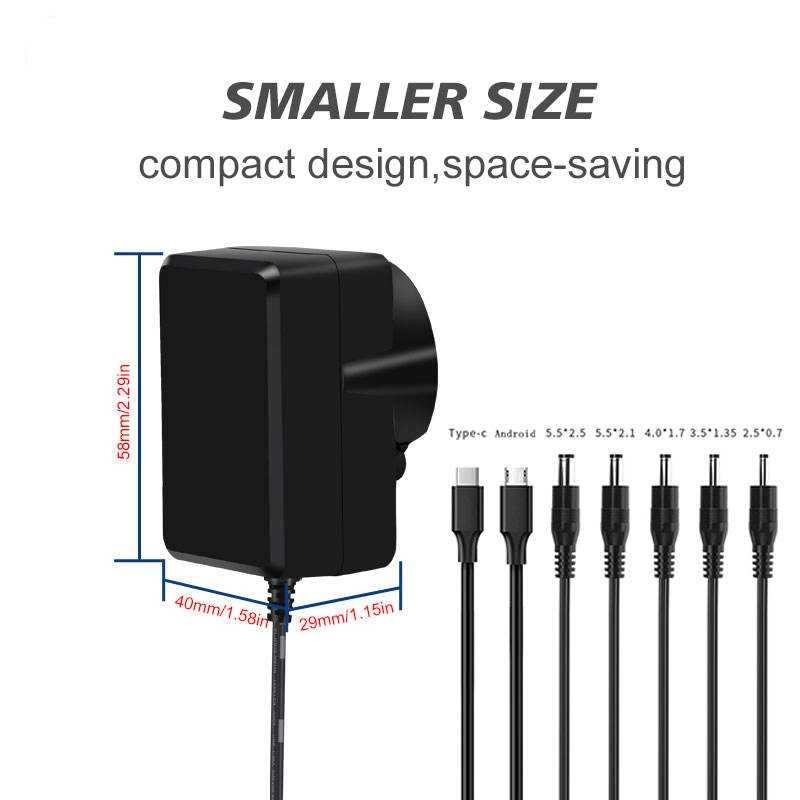 12V 24V இன்டர்சேஞ்சபிள் பிளக் பவர் சப்ளை அடாப்டர் பரிமாணம்(மிமீ):