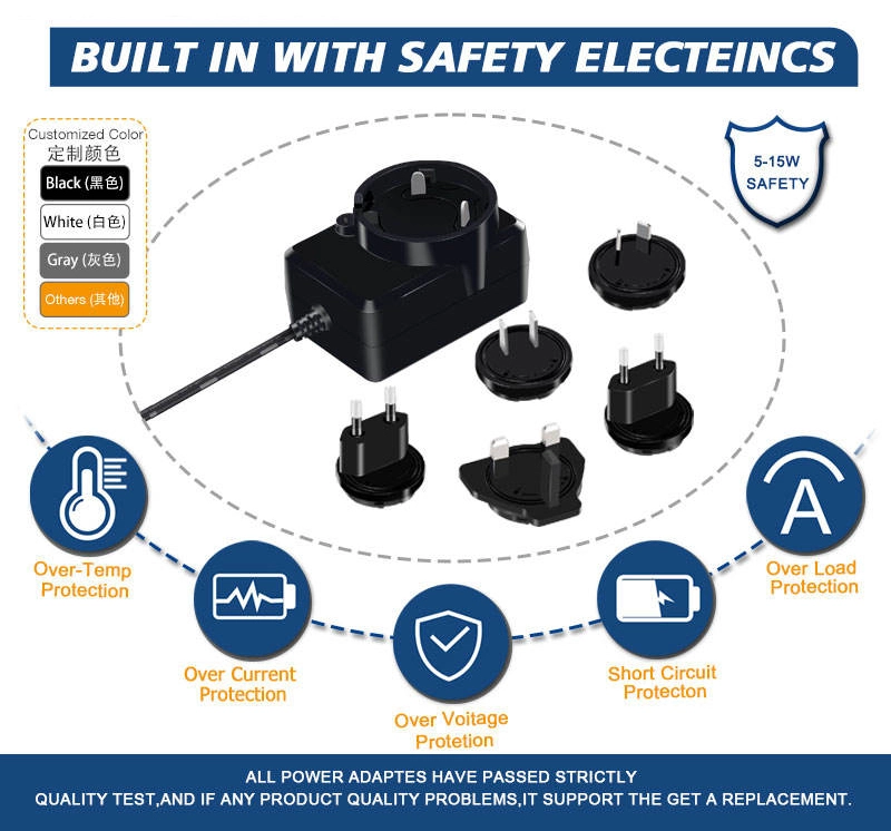ஸ்டார்வெல் உயர்தர இன்டர்சேஞ்சபிள் ப்ளக் பவர் சப்ளை அடாப்டர் என்பது ஒரு பல்துறை மற்றும் கையடக்க சாதனம் ஆகும், இது AC (மாற்று மின்னோட்டம்) மின்சக்தியை சுவர் கடையிலிருந்து நிலையான, குறைந்த மின்னழுத்த DC (நேரடி மின்னோட்டம்) சக்தியாக மாற்ற வடிவமைக்கப்பட்டுள்ளது. பல்வேறு சர்வதேச சாக்கெட் தரங்களுக்கு இணங்கக்கூடிய பிரிக்கக்கூடிய மற்றும் மாற்றக்கூடிய பிளக்குகளின் (பெரும்பாலும் "ஏசி பிளக்குகள்" அல்லது "இன்புட் பிளேடுகள்" என அழைக்கப்படும்) அதன் வரையறுக்கும் அம்சம்.