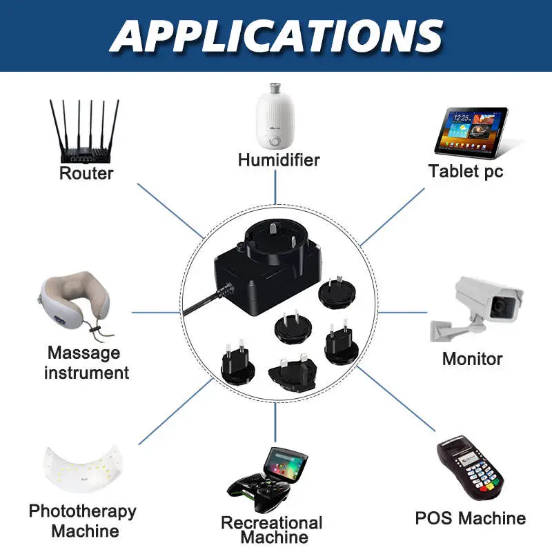 * பல ஏசி பிளக்குகள் (பிளக் கிட் தனித்தனியாக விற்கப்படுகிறது) * யுனிவர்சல் ஏசி உள்ளீட்டு மின்னழுத்தம் * ஒற்றை சேனல் மற்றும் நிலையான மின்னழுத்த மின்சாரம்