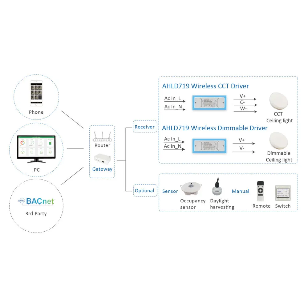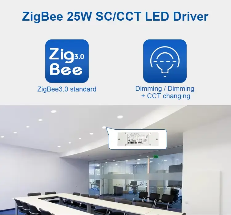 இயக்கி ஒரு ஜிக்பீ மெஷ் நெட்வொர்க்கில் இயங்குகிறது மற்றும் திட்டமிடல், காட்சிக் கட்டுப்பாடு, குழுக் கட்டுப்பாடு மற்றும் ஆட்டோமேஷன் போன்ற ஸ்மார்ட் லைட்டிங் செயல்பாடுகளை செயல்படுத்த ஜிக்பீ கேட்வேயுடன் இணைக்கிறது. இந்த வகை எல்இடி இயக்கி பொதுவாக ஸ்மார்ட் ஹோம் லைட்டிங் சிஸ்டம்ஸ், கமர்ஷியல் லைட்டிங் நிறுவல்கள் மற்றும் புத்திசாலித்தனமான கட்டிடக் கட்டுப்பாட்டு சூழல்களில் பயன்படுத்தப்படுகிறது.